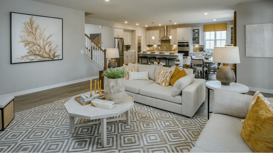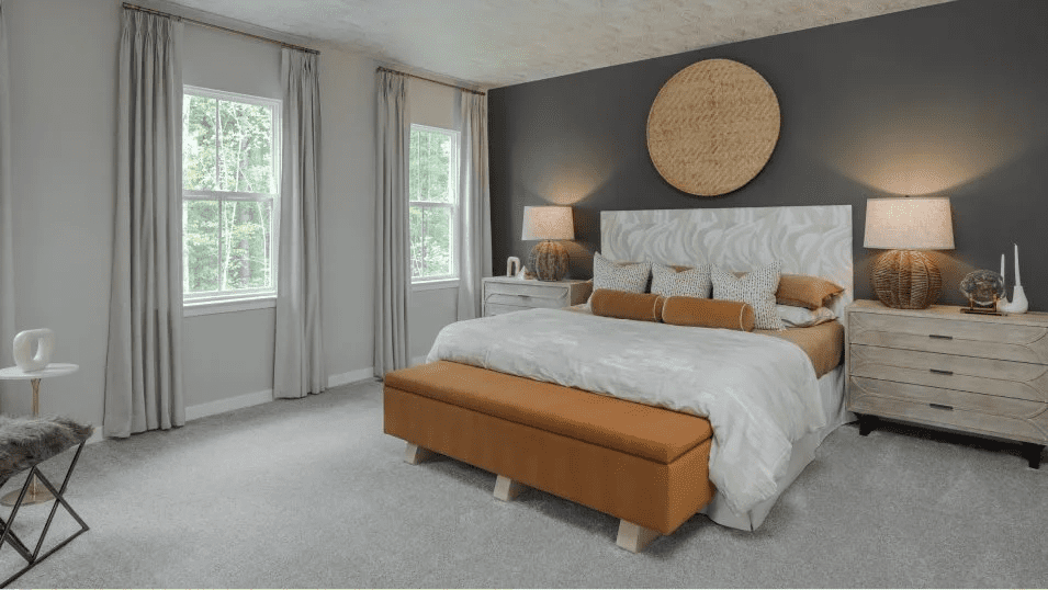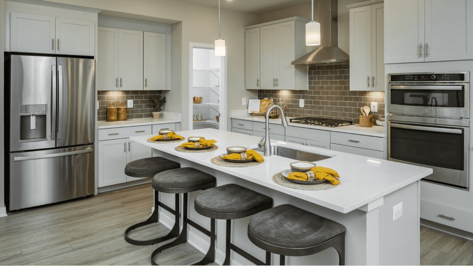 This new two-story home showcases an appealing modern design- the first floor features an open-plan layout among the Great Room, casual breakfast room and a gourmet kitchen with elegant Carmel Fantasy countertops and timeless linen cabinetry. A formal dining room provides additional space for entertaining, while a private office offers a quiet retreat for work or study. A conveniently located guest suite on the main level adds flexibility for overnight visitors. Upstairs, a spacious loft creates versatile shared-living space, joined by four bedrooms including a lavish owner’s suite. An unfinished basement offers room for future customization.