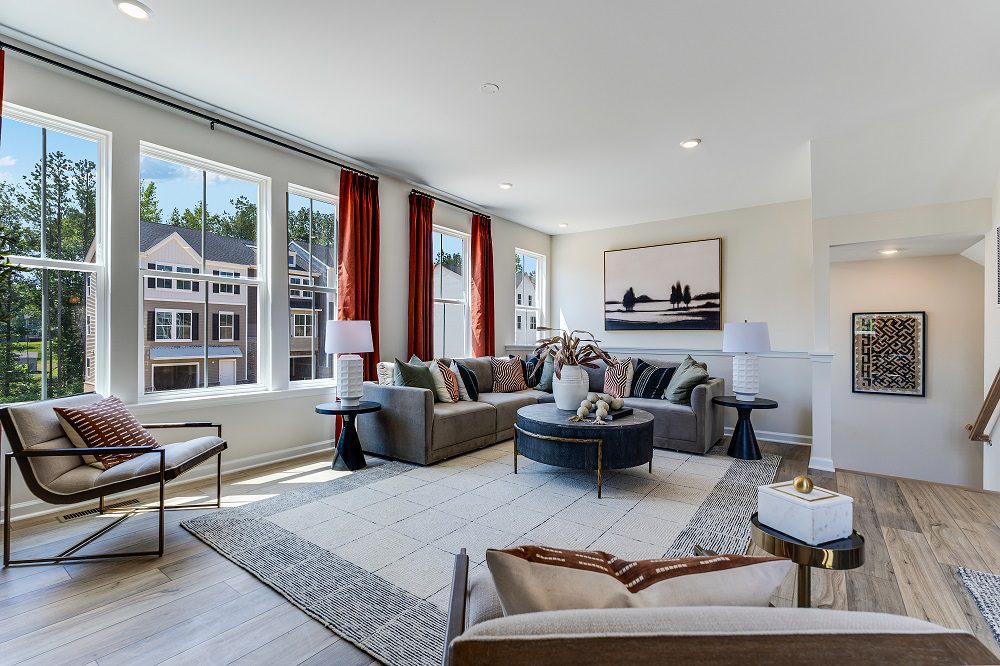 This move-in ready townhome in Chesterfield VA offer a versatile three-story layout designed for modern living, beginning with a spacious recreation room and a convenient first-floor bedroom suite—ideal for guests or flexible use. The main living level showcases an open-concept design that seamlessly connects the Great Room, dining area, and a well-appointed kitchen featuring linen cabinetry and Carmel Fantasy countertops.